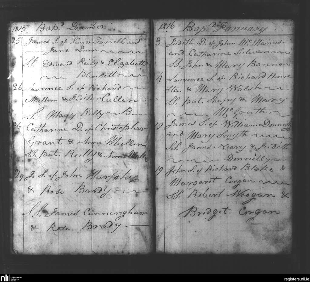 Beauparc; County of Meath; Diocese of Meath. Baptisms, Dec. 1815 to Jan. 1816