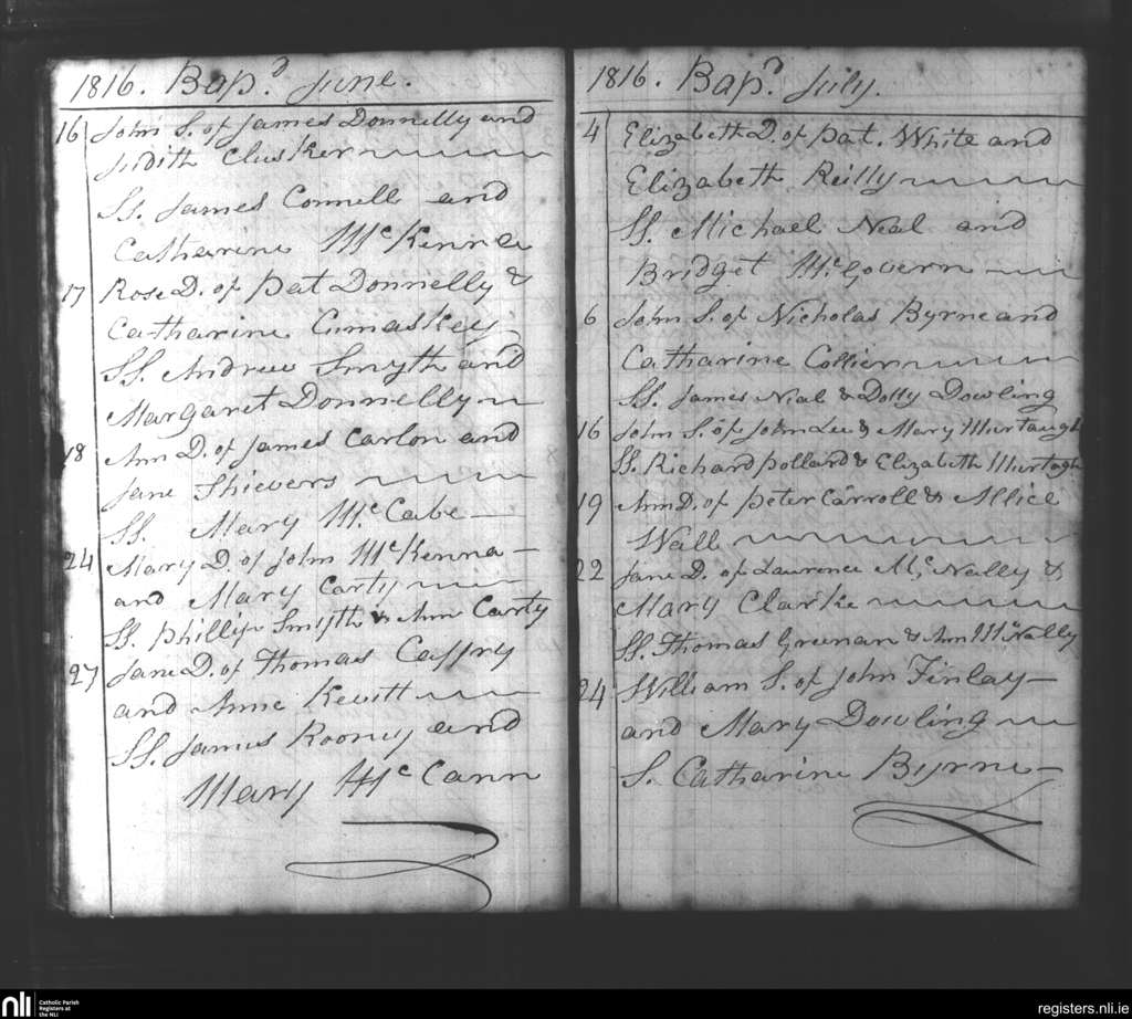 Beauparc; County of Meath; Diocese of Meath. Baptisms, June 1816 to July 1816