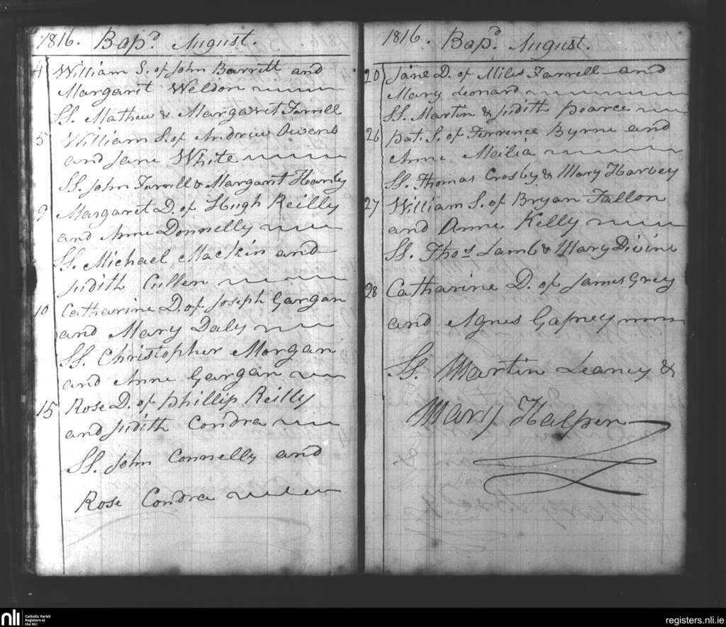 Beauparc; County of Meath; Diocese of Meath. Baptisms, Aug. 1816