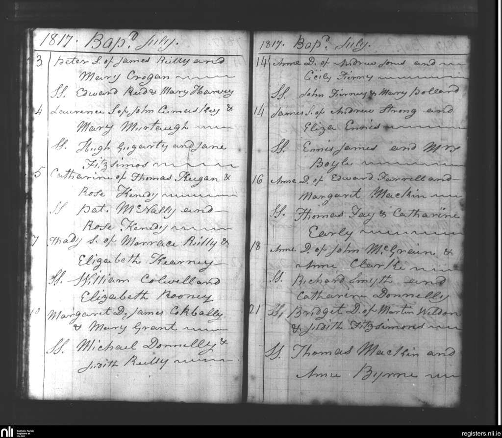 Beauparc; County of Meath; Diocese of Meath. Baptisms, July 1817
