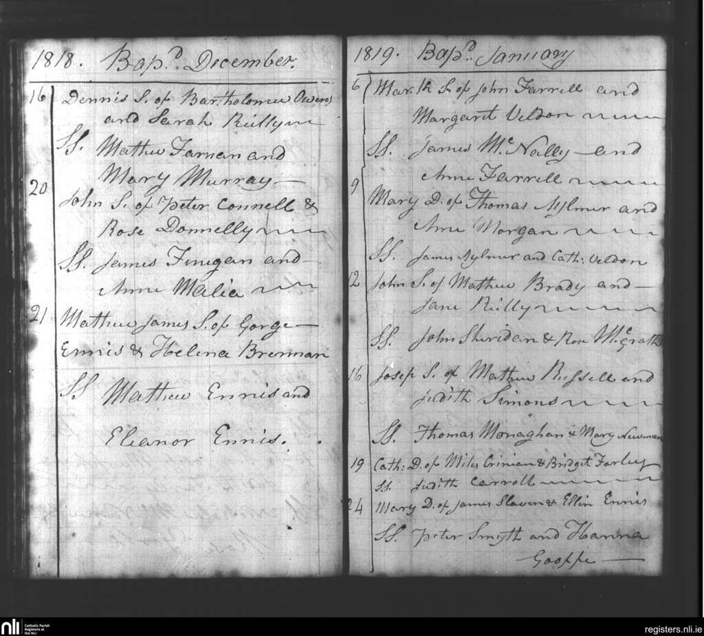 Beauparc; County of Meath; Diocese of Meath. Baptisms, Dec. 1818 to Jan. 1819