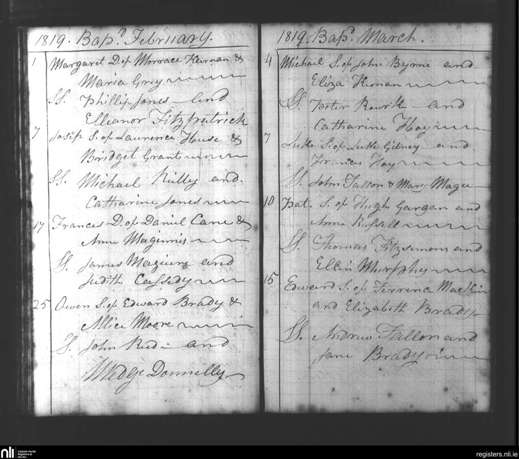 Beauparc; County of Meath; Diocese of Meath. Baptisms, Feb. 1819 to Mar. 1819