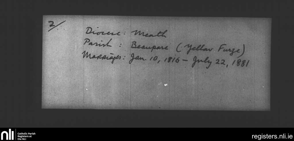 Beauparc; County of Meath; Diocese of Meath. Marriages