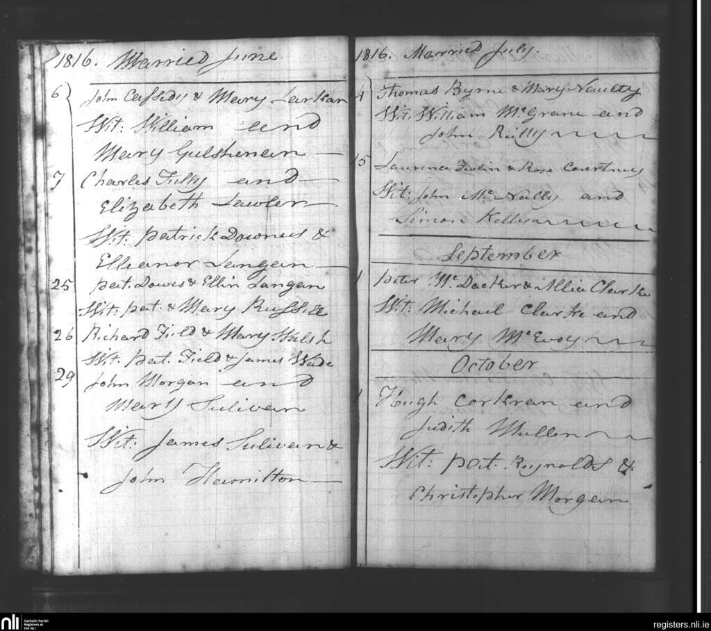 Beauparc; County of Meath; Diocese of Meath. Marriages, June 1816 to Oct. 1816