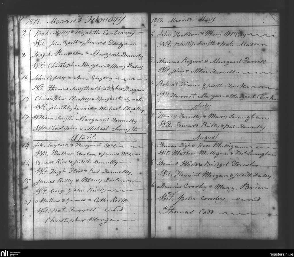 Beauparc; County of Meath; Diocese of Meath. Marriages, Feb. 1817 to Aug. 1817