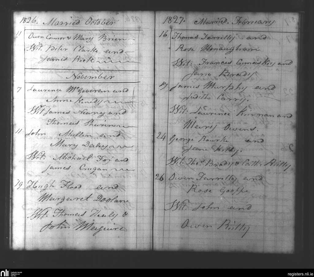 Beauparc; County of Meath; Diocese of Meath. Marriages, Oct. 1826 to Feb. 1827