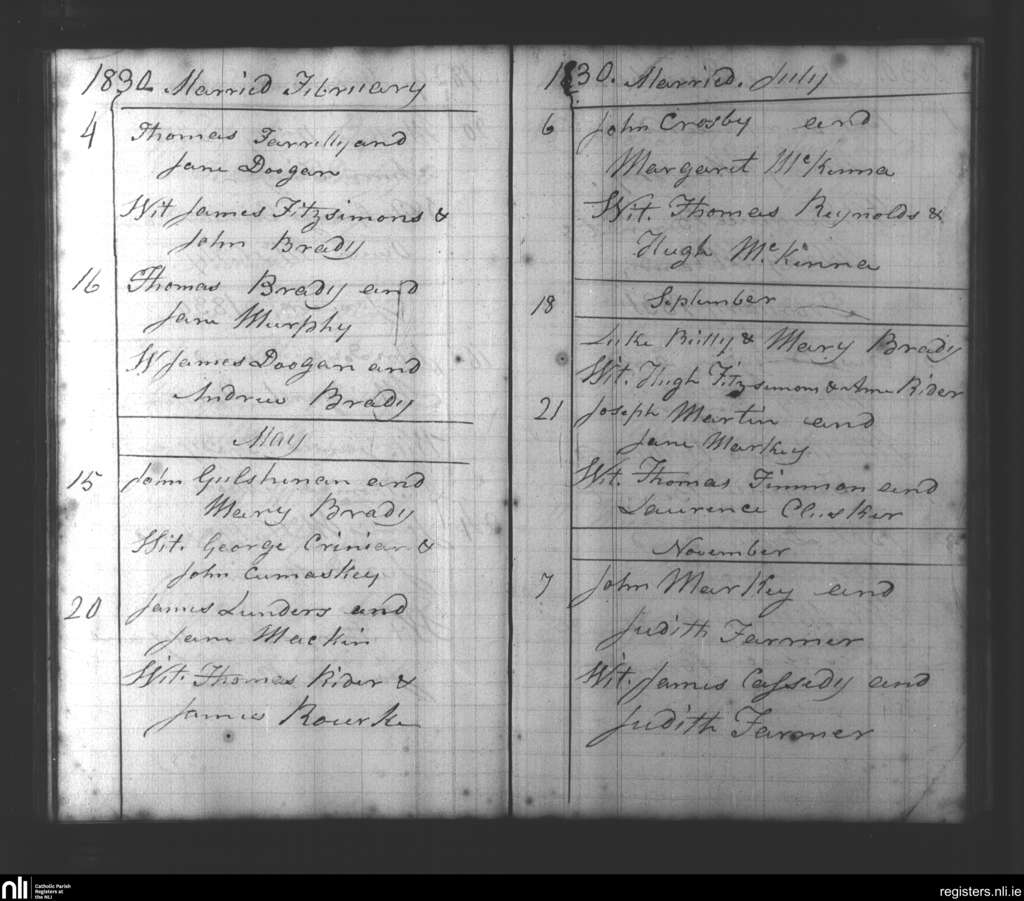 Beauparc; County of Meath; Diocese of Meath. Marriages, Feb. 1830 to Nov. 1830