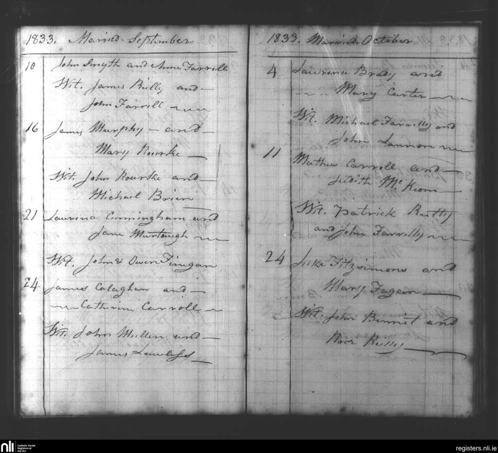 Beauparc; County of Meath; Diocese of Meath. Marriages, Sep. 1833 to Oct. 1833