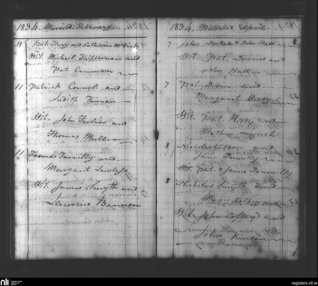 Beauparc; County of Meath; Diocese of Meath. Marriages, Feb. 1834 to Apr. 1834