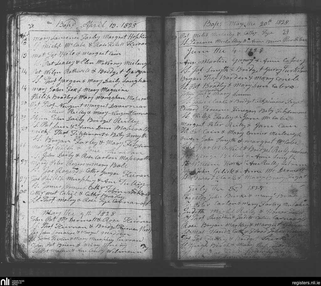 Carnaross; County of Meath, Cavan; Diocese of Meath. Baptisms, Apr. 1828 to July 1828