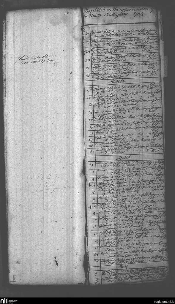 Castlepollard; County of Westmeath; Diocese of Meath. Baptisms, Feb. 1764 to May 1764