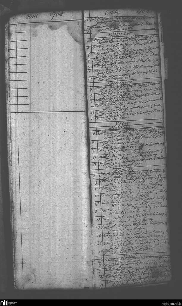 Castlepollard; County of Westmeath; Diocese of Meath. Baptisms, Oct. 1764 to Mar. 1765
