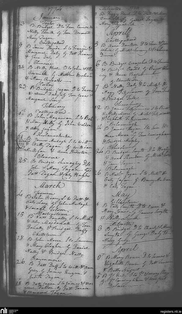 Castlepollard; County of Westmeath; Diocese of Meath. Baptisms, Jan. 1774 to May 1774