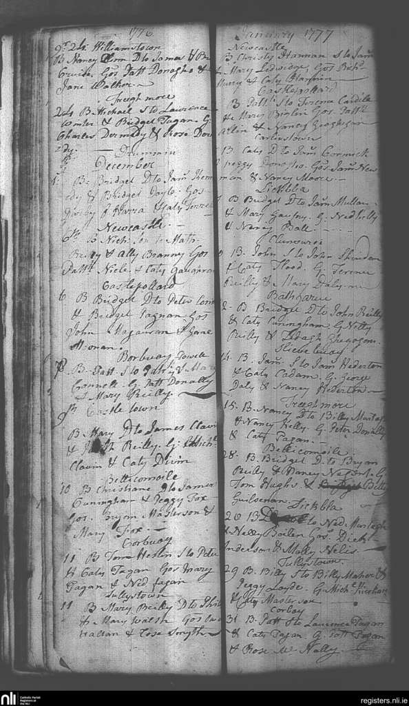 Castlepollard; County of Westmeath; Diocese of Meath. Baptisms, Nov. 1776 to Jan. 1777