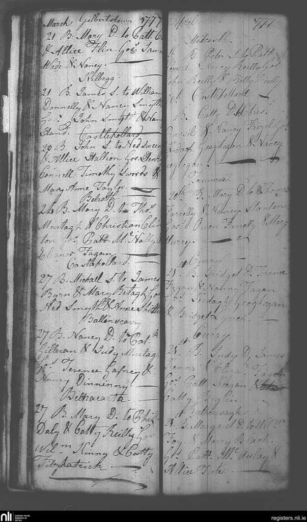 Castlepollard; County of Westmeath; Diocese of Meath. Baptisms, Mar. 1777 to Apr. 1777