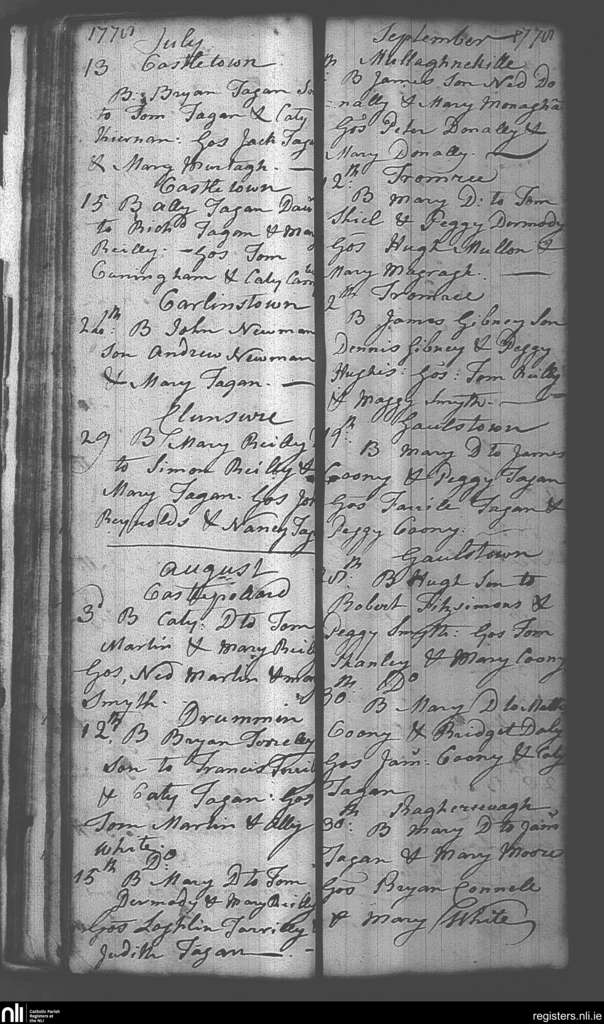 Castlepollard; County of Westmeath; Diocese of Meath. Baptisms, July 1778 to Sep. 1778