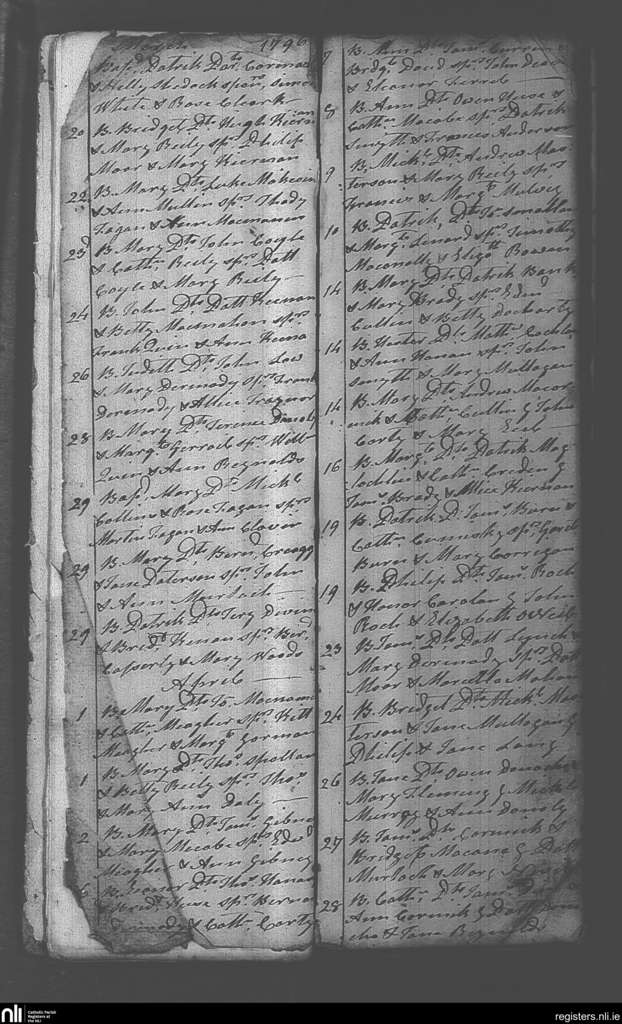 Castlepollard; County of Westmeath; Diocese of Meath. Baptisms, Mar. 1796 to Apr. 1796