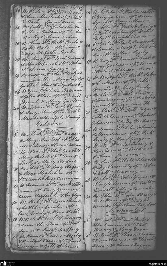 Castlepollard; County of Westmeath; Diocese of Meath. Baptisms, Sep. 1796 to Nov. 1796