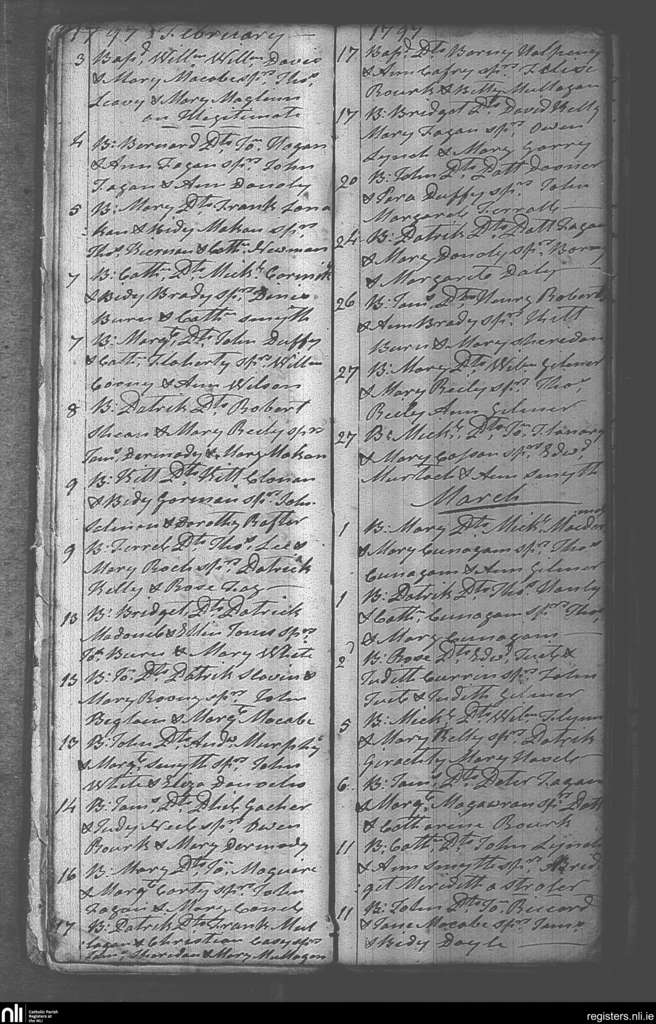Castlepollard; County of Westmeath; Diocese of Meath. Baptisms, Feb. 1797 to Mar. 1797