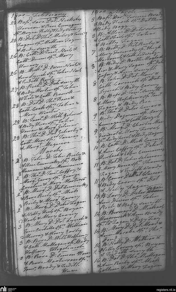 Castlepollard; County of Westmeath; Diocese of Meath. Baptisms, Feb. 1800 to Mar. 1800