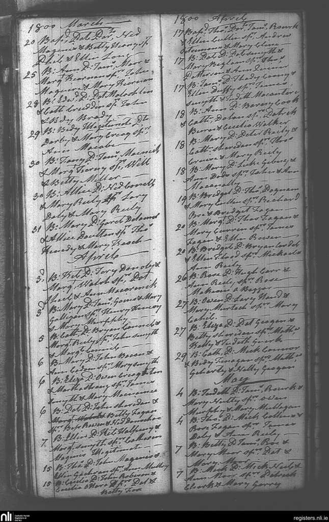 Castlepollard; County of Westmeath; Diocese of Meath. Baptisms, Mar. 1800 to May 1800