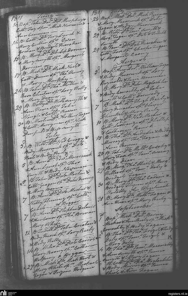 Castlepollard; County of Westmeath; Diocese of Meath. Baptisms, June 1801 to Sep. 1801