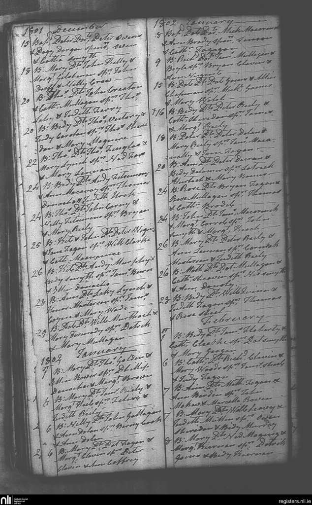 Castlepollard; County of Westmeath; Diocese of Meath. Baptisms, Dec. 1801 to Feb. 1802
