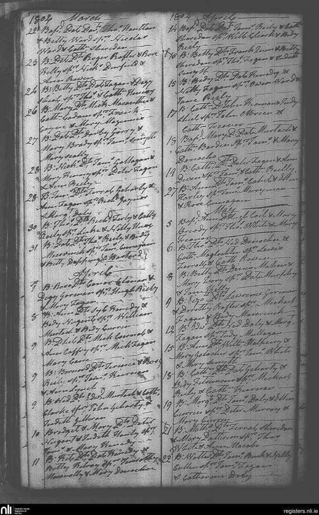 Castlepollard; County of Westmeath; Diocese of Meath. Baptisms, Mar. 1802 to May 1802