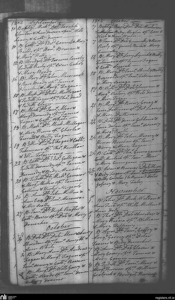 Castlepollard; County of Westmeath; Diocese of Meath. Baptisms, Sep. 1802 to Nov. 1802