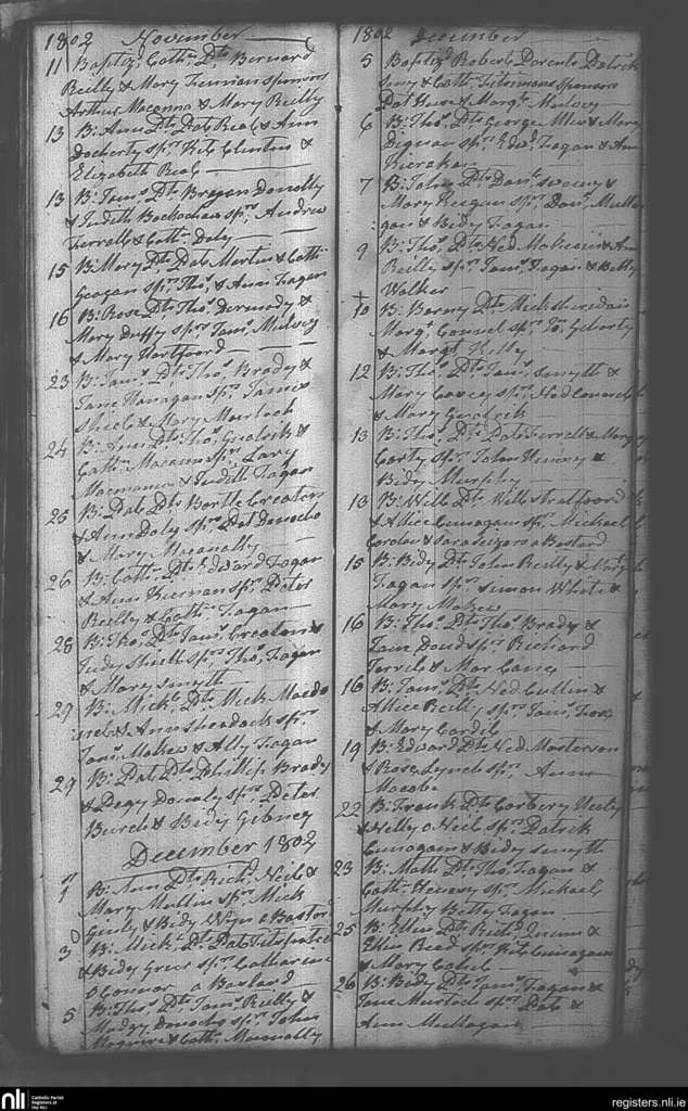 Castlepollard; County of Westmeath; Diocese of Meath. Baptisms, Nov. 1802 to Dec. 1802