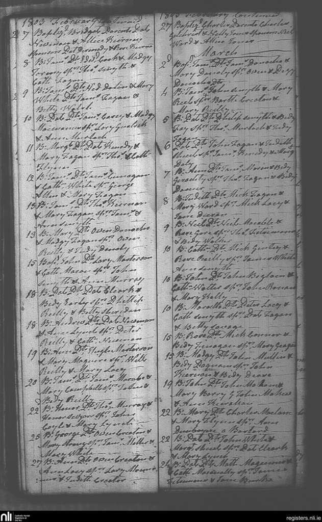 Castlepollard; County of Westmeath; Diocese of Meath. Baptisms, Feb. 1803 to Mar. 1803