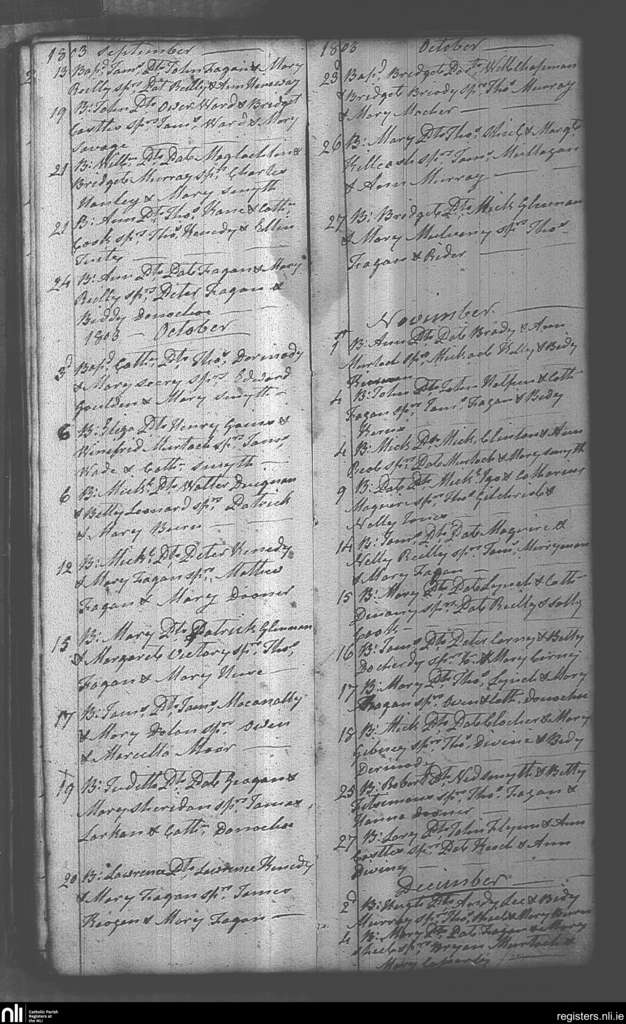 Castlepollard; County of Westmeath; Diocese of Meath. Baptisms, Sep. 1803 to Dec. 1803