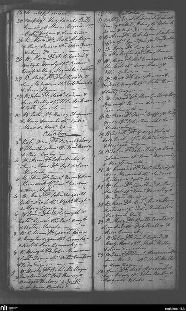 Castlepollard; County of Westmeath; Diocese of Meath. Baptisms, Sep. 1804 to Oct. 1804