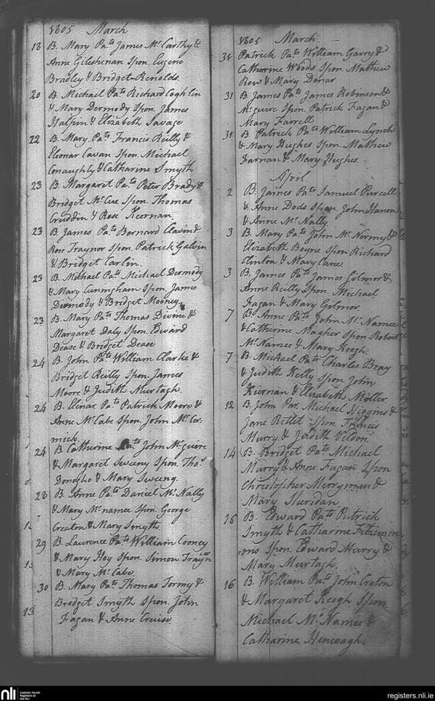 Castlepollard; County of Westmeath; Diocese of Meath. Baptisms, Mar. 1805 to Apr. 1805