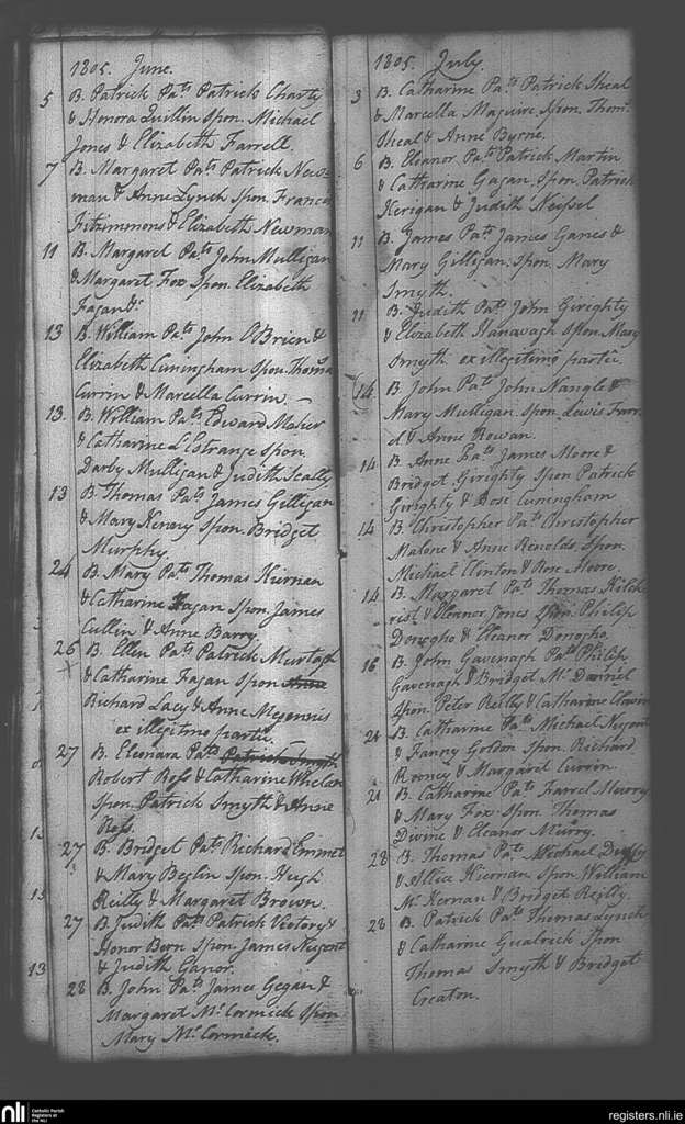 Castlepollard; County of Westmeath; Diocese of Meath. Baptisms, June 1805 to July 1805