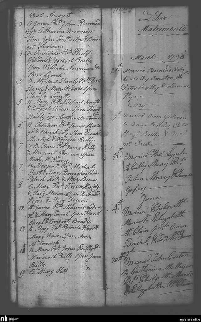 Castlepollard; County of Westmeath; Diocese of Meath. Baptisms, Marriages, Mar. 1793 to Aug. 1805