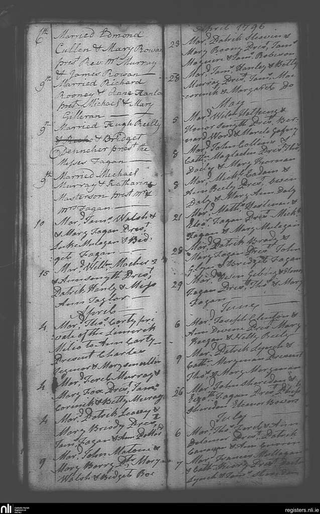 Castlepollard; County of Westmeath; Diocese of Meath. Marriages, Mar. 1796 to July 1796