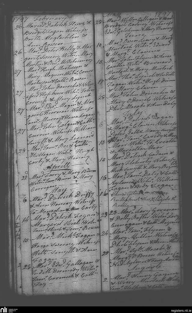 Castlepollard; County of Westmeath; Diocese of Meath. Marriages, Feb. 1797 to Aug. 1797