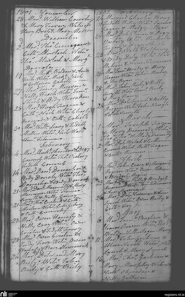 Castlepollard; County of Westmeath; Diocese of Meath. Marriages, Nov. 1801 to May 1802