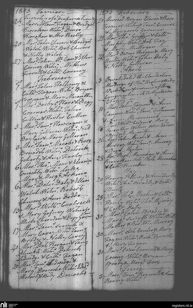 Castlepollard; County of Westmeath; Diocese of Meath. Marriages, Jan. 1803 to June 1803