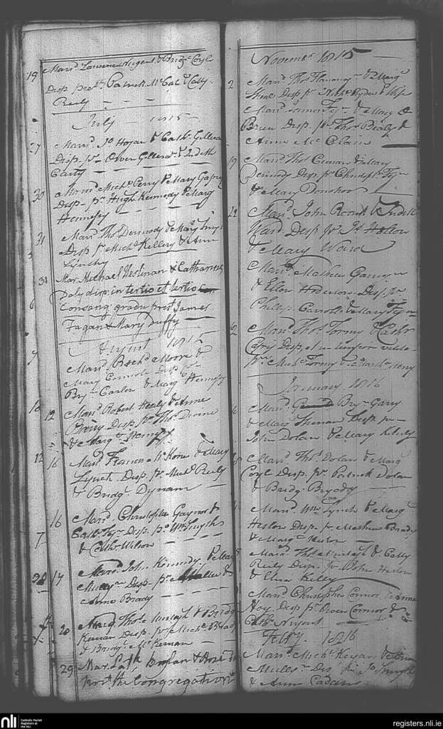 Castlepollard; County of Westmeath; Diocese of Meath. Marriages, June 1815 to Feb. 1816