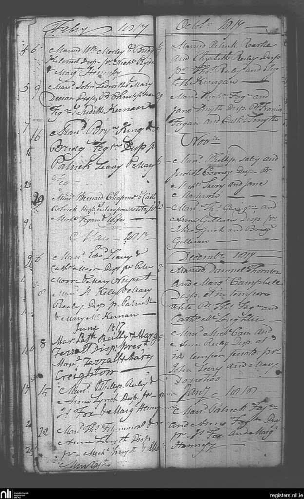 Castlepollard; County of Westmeath; Diocese of Meath. Marriages, Feb. 1817 to Jan. 1818
