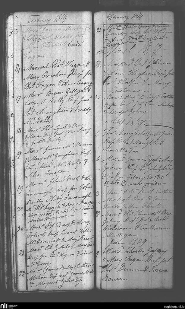 Castlepollard; County of Westmeath; Diocese of Meath. Marriages, Feb. 1819 to June 1819