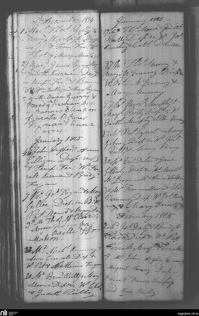 Castlepollard; County of Westmeath; Diocese of Meath. Marriages, Dec. 1824 to Feb. 1825