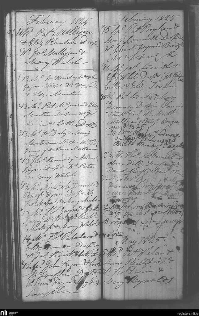 Castlepollard; County of Westmeath; Diocese of Meath. Marriages, Feb. 1825 to May 1825