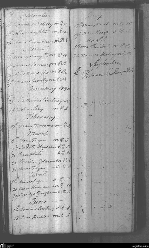 Castlepollard; County of Westmeath; Diocese of Meath. Deaths, Nov. 1793 to Sep. 1794