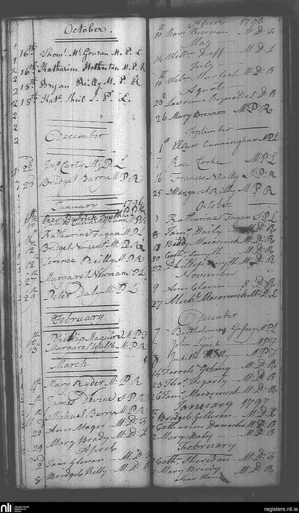 Castlepollard; County of Westmeath; Diocese of Meath. Deaths, Oct. 1795 to Feb. 1797