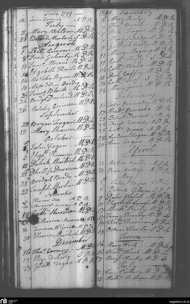 Castlepollard; County of Westmeath; Diocese of Meath. Deaths, June 1799 to July 1800