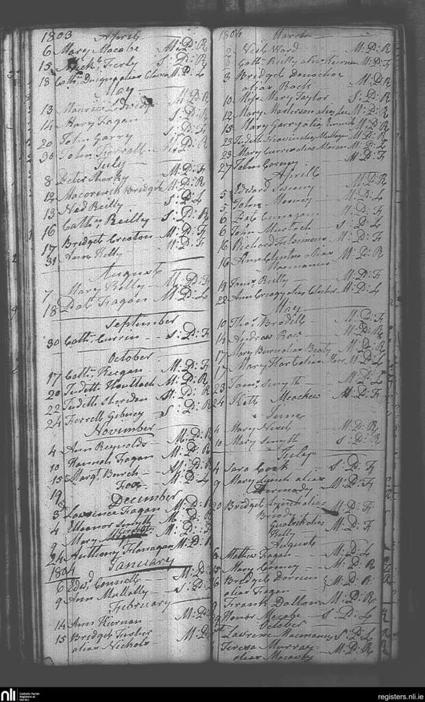 Castlepollard; County of Westmeath; Diocese of Meath. Deaths, Apr. 1803 to Oct. 1804