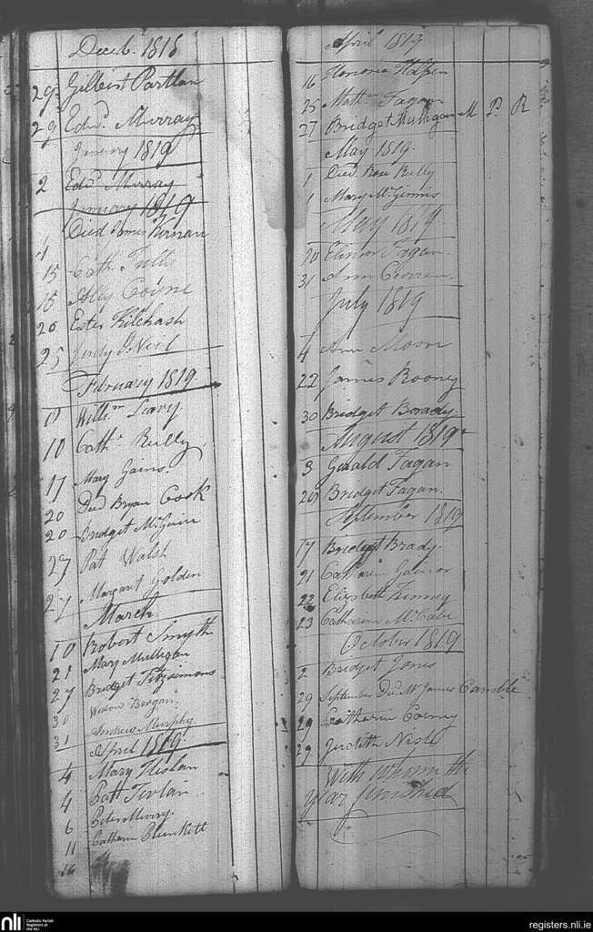 Castlepollard; County of Westmeath; Diocese of Meath. Deaths, Dec. 1818 to Oct. 1819